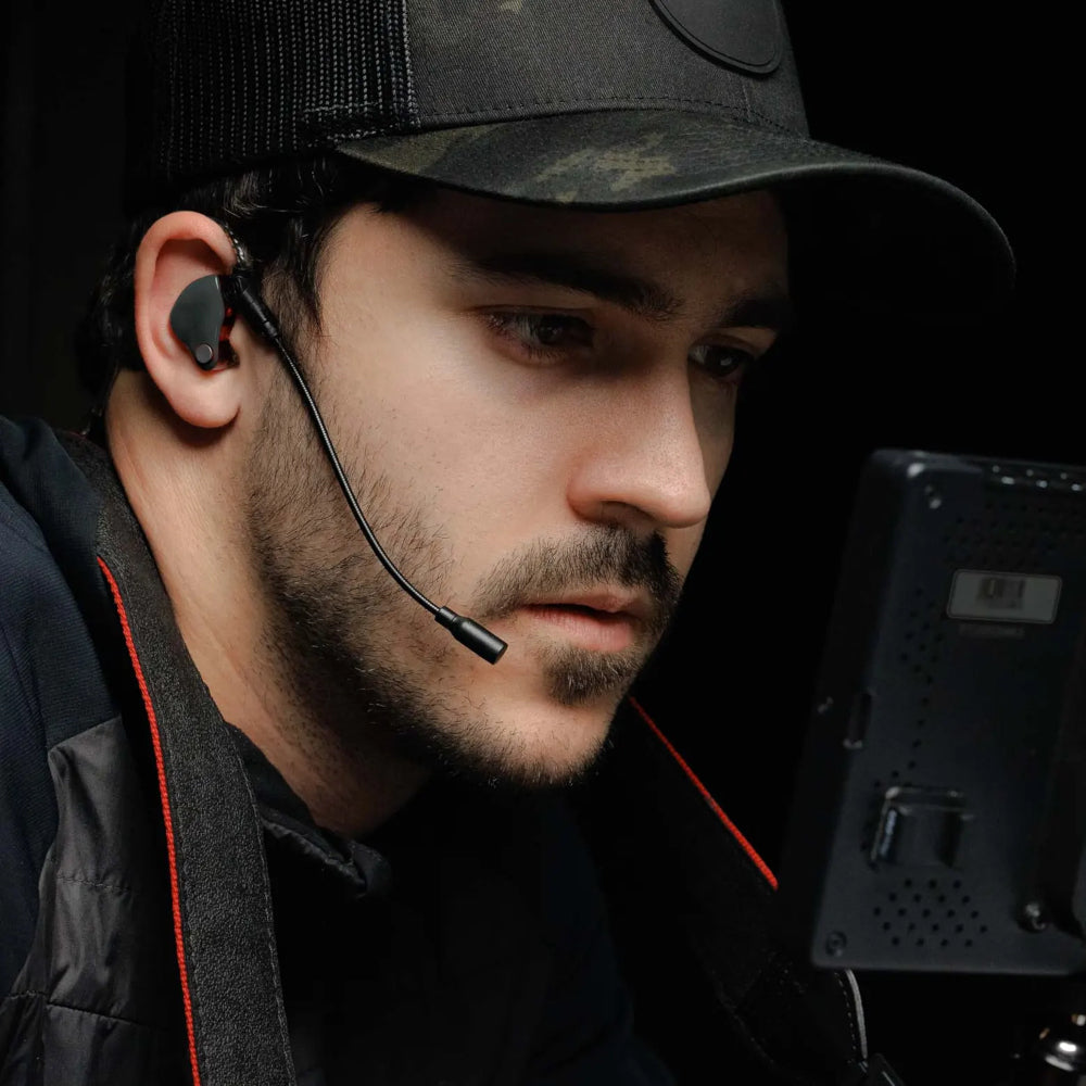 - Discreet boom mic attaches securely to IEM cable