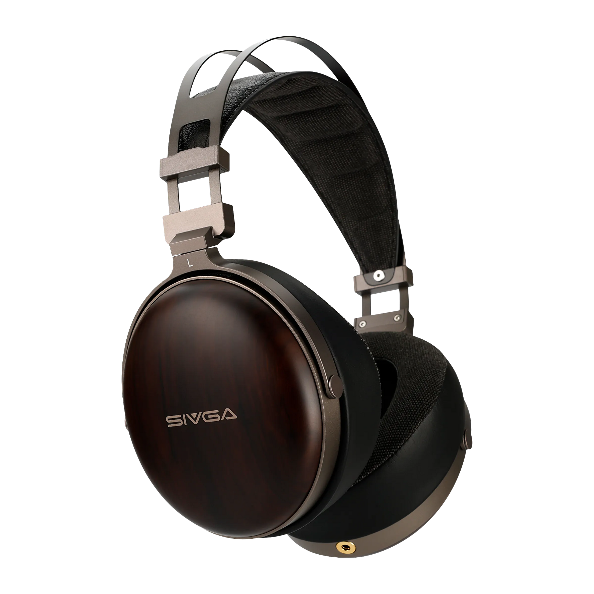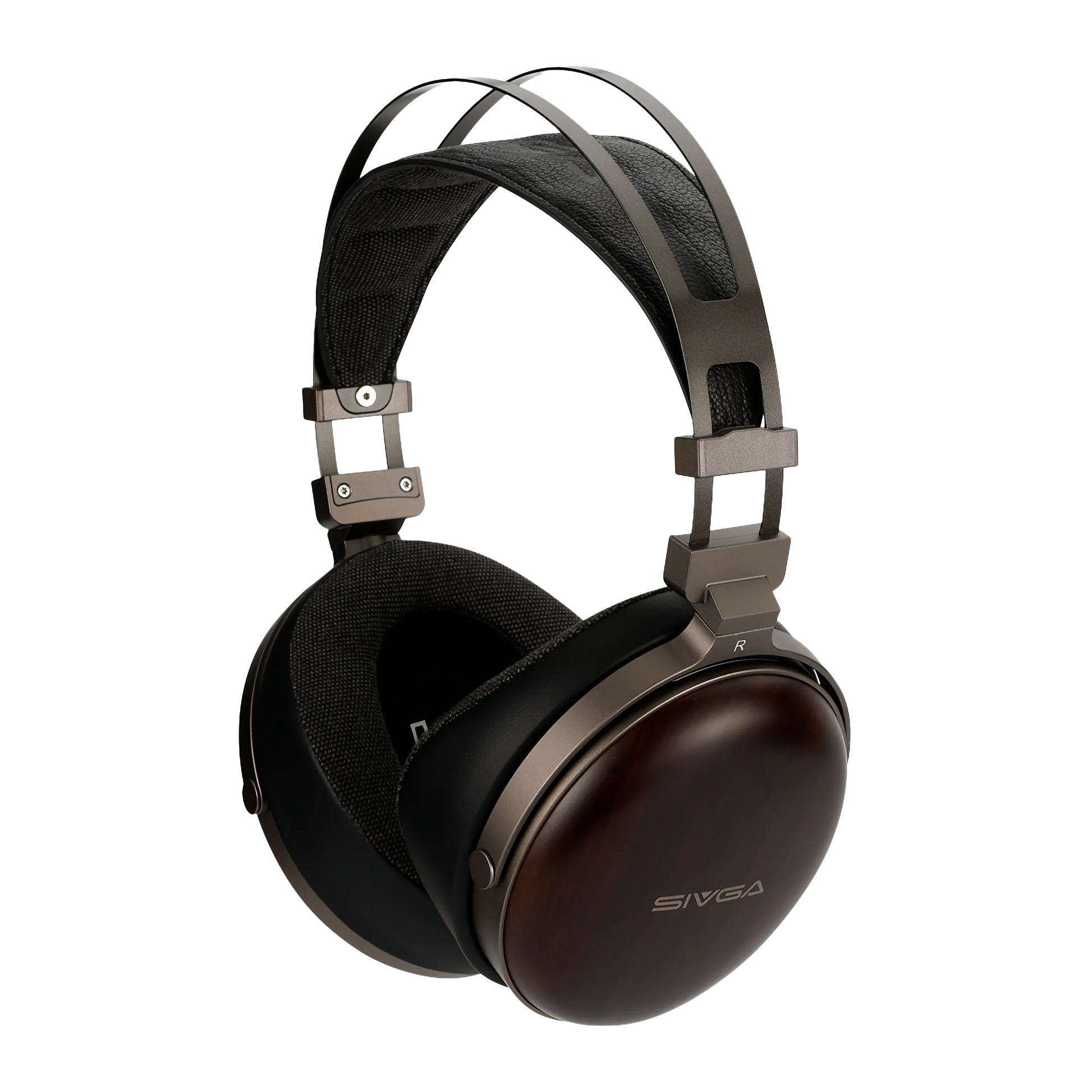 The SIVGA Peng blends organic warmth with industrial precision. High-density African zebrawood earcups are polished, stained and air-dried to reveal their unique grain, while aviation-grade aluminium brackets and housing are CNC-machined and gunmetal-anodised for sleek durability. A lamb-leather headband pad atop an integrated steel frame resists deformation and distributes pressure evenly, marrying refinement with lasting strength.